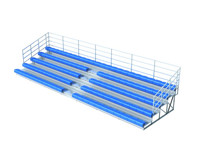 產品特點:主要結構(一體支架)以角鋁組焊成型,其余部件均采用鋁材加工而成,看臺在滿足結構和使用安全的前提下最大限度減輕了看臺整體的重量,防腐性能優越,是架空層場地及戶外場地的首選。