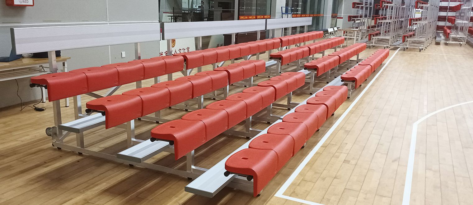 產品特點:主要結構(一體支架)以角鋁組焊而成,重量輕,結構小而精,可配置萬向輪以方便靈活移動看臺,適合小型場館,臨時看臺選擇